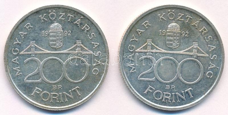 Leírás: 1992. 200Ft Ag "MNB" (2x) T:1- patina kis ph. Adamo F13