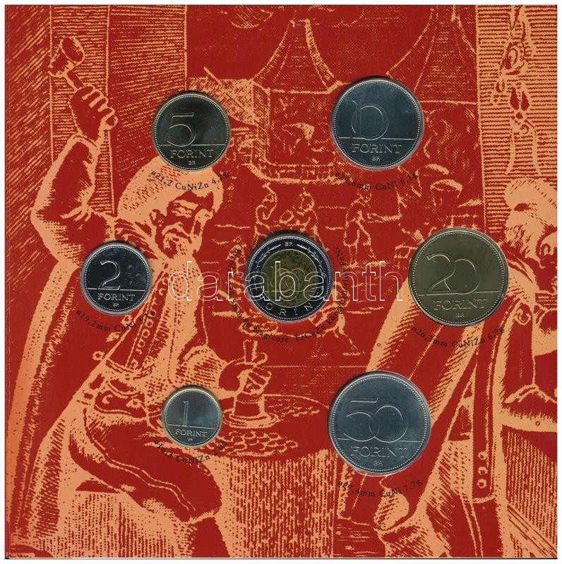 Leírás: 2001. 1Ft-100Ft (7xklf) forgalmi sor dísztokban, "Magyarország pénzérméi" sorozat T:PP Adamo FO34.1