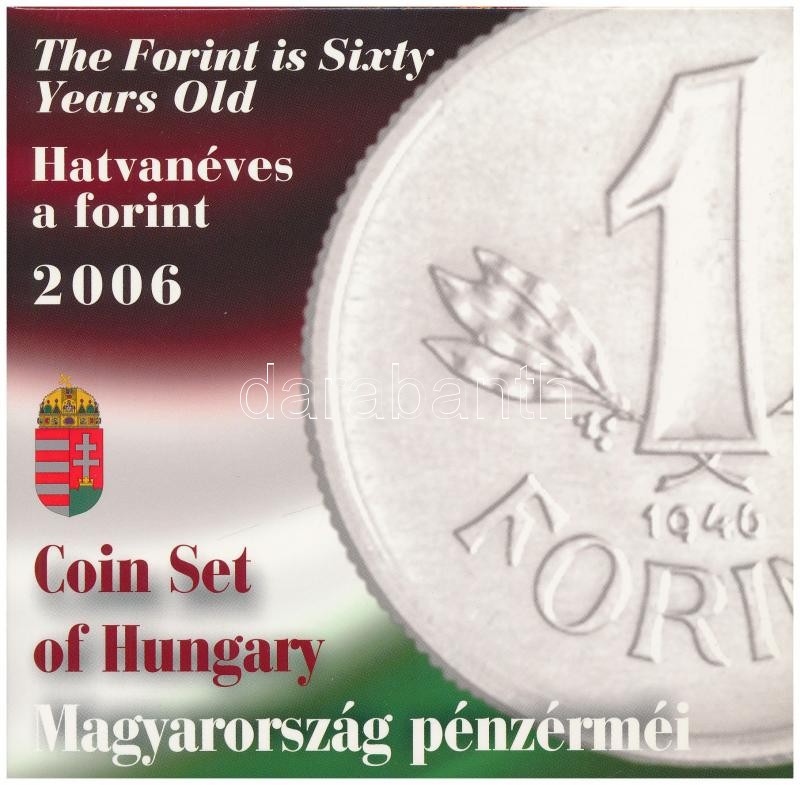2006. 1Ft-100Ft (8xklf) forgalmi sor szettben, benne 1946-os 1Ft Ag &q... https://www.darabanth.com/hu/356-Gyorsarveres/356.0/Numizmatika/Magyar-es-magyar-verdejelu-fem-es-ezustpenzek~2500009/2006-1Ft-100Ft-8xklf-forgalmi-sor-szettben-benne-1946-os-1Ft-Ag-Hatvaneves-a-Forint-proof-kiv~II2037009