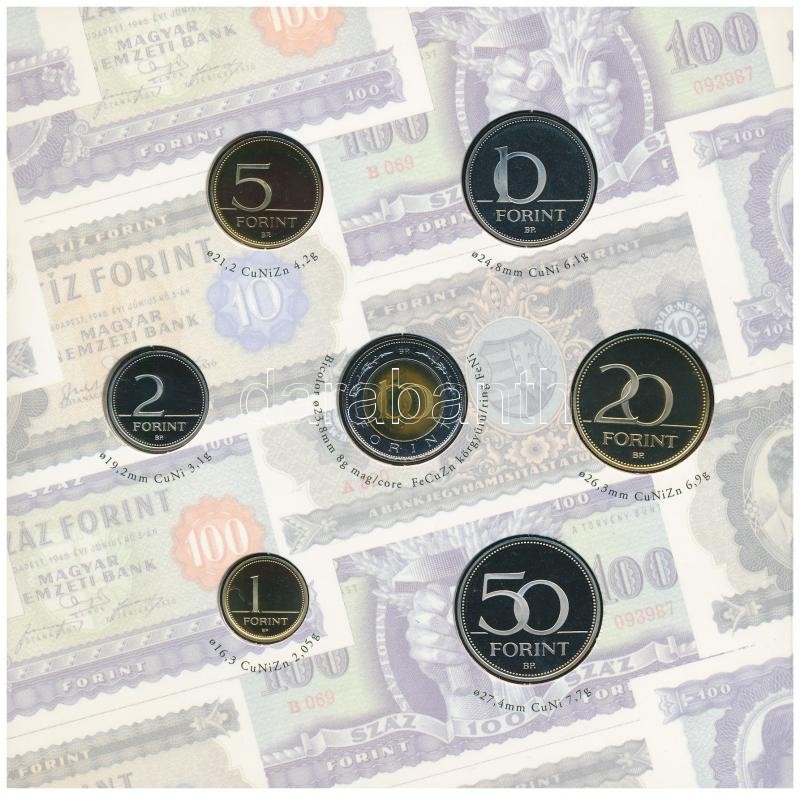 Leírás: 2006. 1Ft-100Ft (8xklf) forgalmi sor szettben, benne 1946-os 1Ft Ag "Hatvanéves a Forint" proof kivitelben T:PP Adamo FO38.1