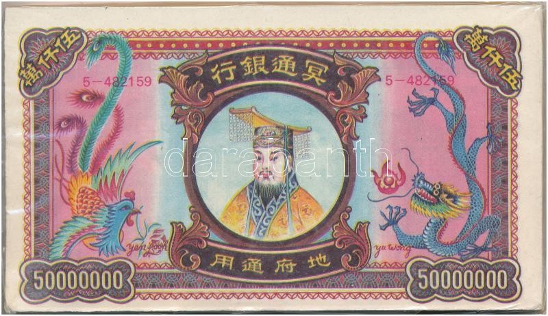 Leírás: Kína DN Égetési pénz 50.000.000 névértékben (150x) eredeti, kicsit sérült csomagolásban T:I