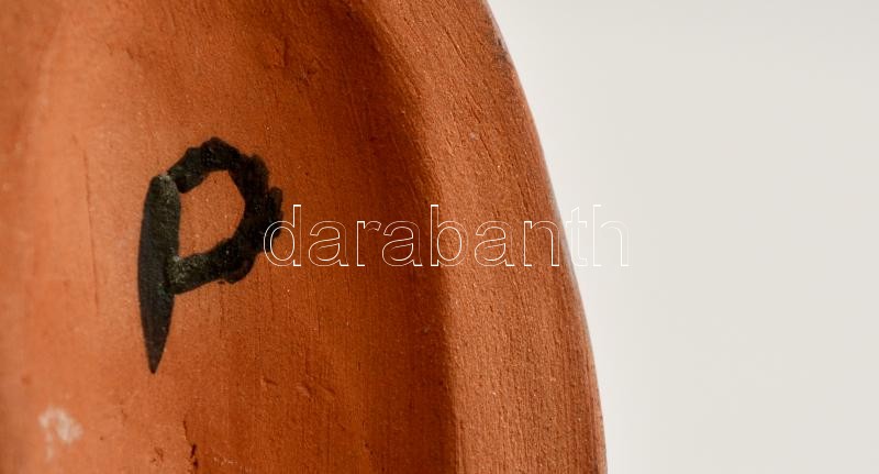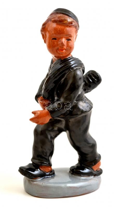 Leírás: Kéményseprő fiúcska, P jelzéssel, mázas kerámia, kopott, m:16 cm