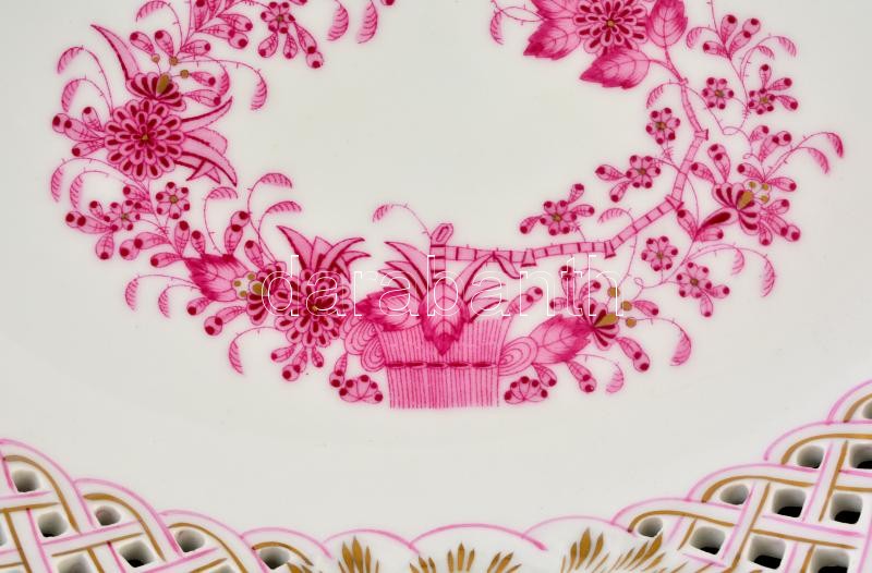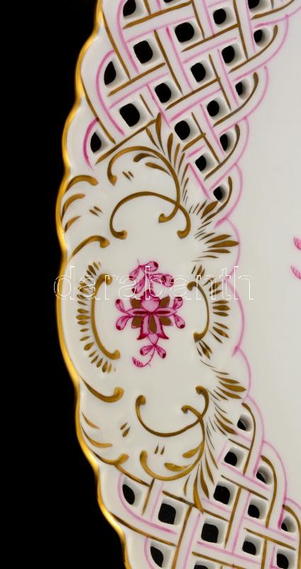 Leírás: Herendi Indiai kosár mintás áttört porcelán tál. Kézzel festett, jelzett, hibátlan. 24 cm