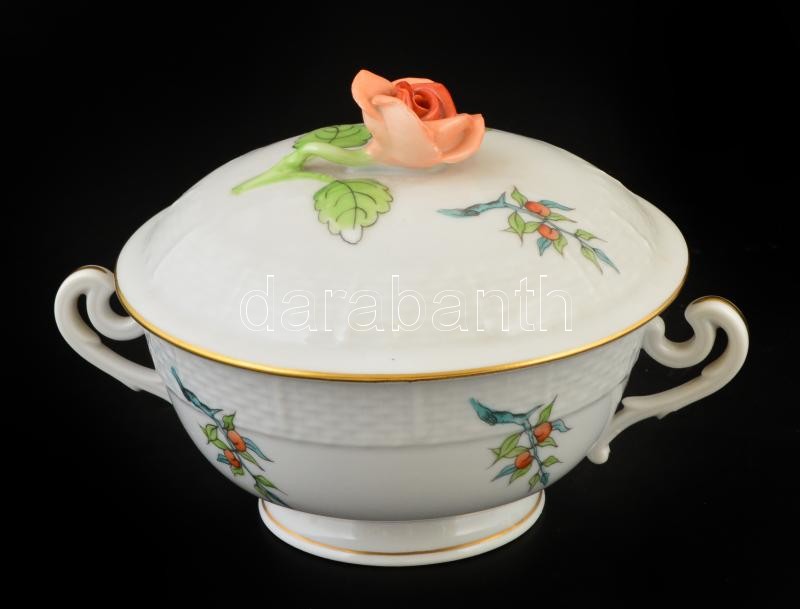 Leírás: Herendi csipkebogyó mintás bonbonier, kézzel festett, jelzett, apró kopásnyomokkal, m:8 cm, 15×11 cm
