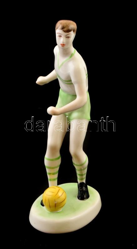 Leírás: Hollóházi porcelán focista, kézzel festett, jelzett, talpán sérüléssel, m: 20 cm