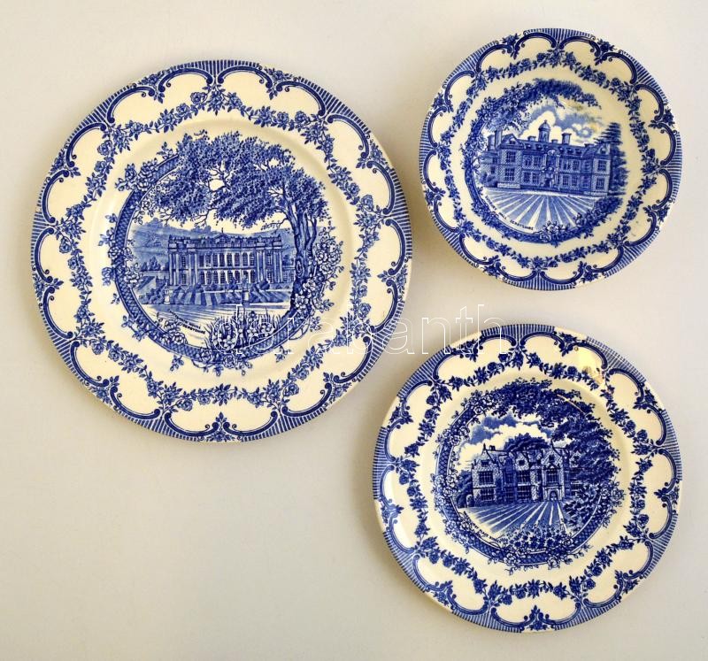 Leírás: Ironstone tányér készlet ( 3 db), levonó képes, jelzett, hibátlan, d:16-25 cm