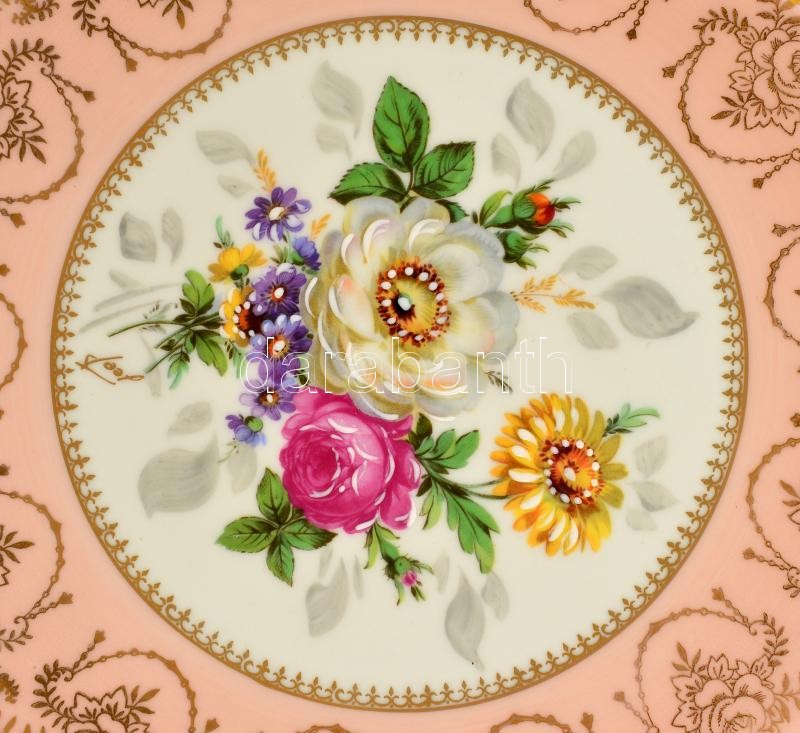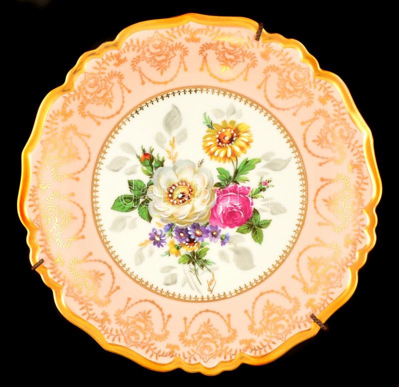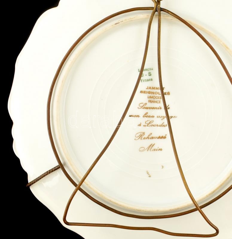 Leírás: Limoges (Jammet seignolles) virág mintás falitányér, részben kézzel festett, jelzett, apró kopásnyomokkal, d: 22 cm