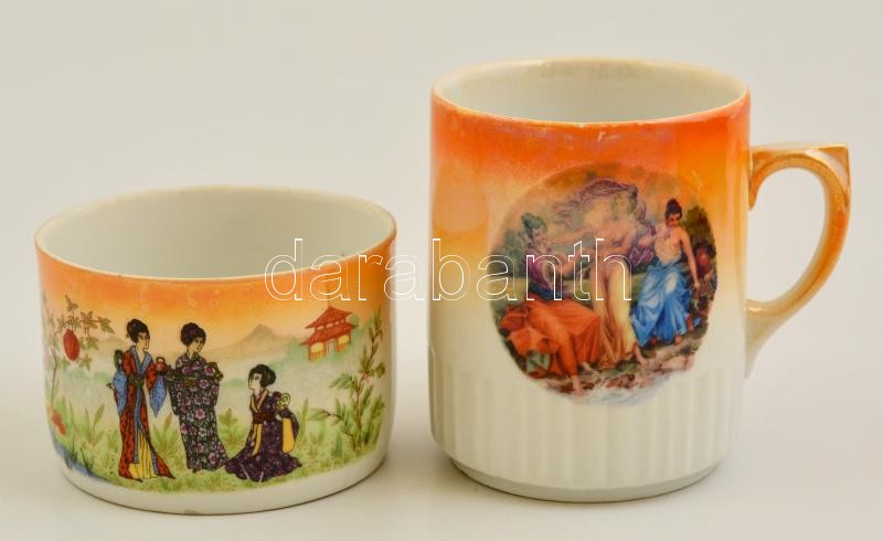 Leírás: Zsolnay matricás bögrék (2db), kopott, jelzett, m:5 és 9 cm