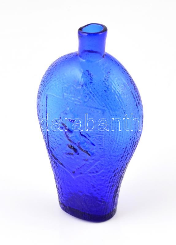 Fújt, címeres kék üveg 16 cm