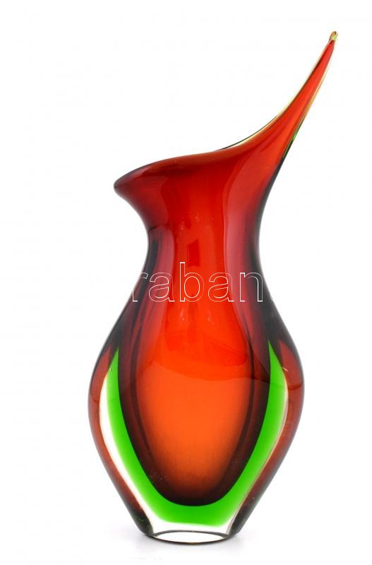 Leírás: Muránói anyagában színezett több rétegű üveg váza, karcolásokkal a végén, jelzés nélkül, m: 23 cm