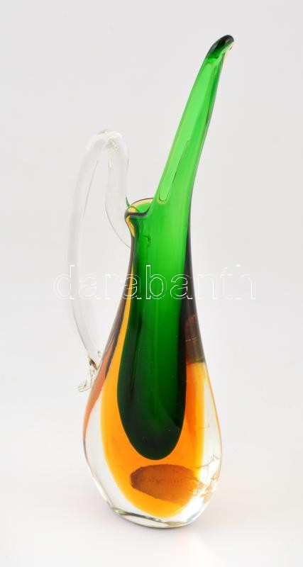 Leírás: Muránói anyagában színezett több rétegű üveg váza, karcolásokkal a végén, jelzett, m: 25,5 cm