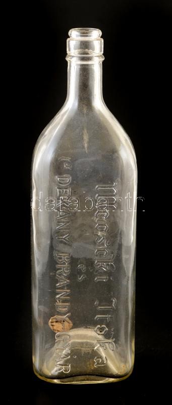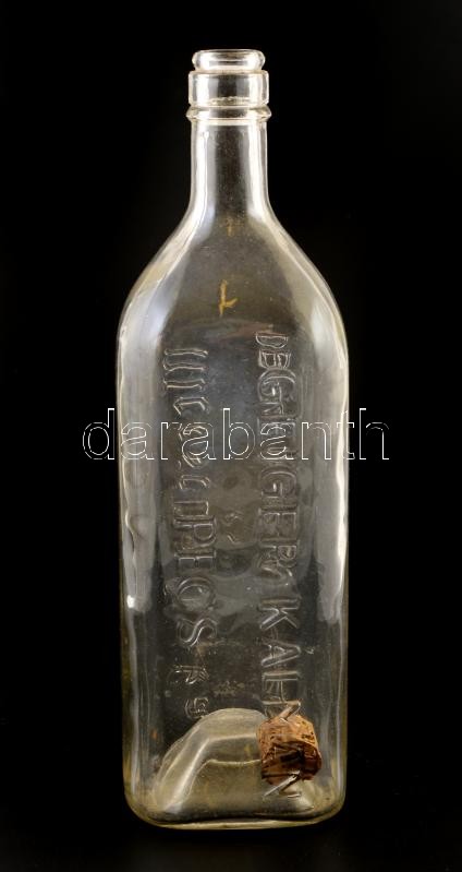 Leírás: cca 1910 Geiger Kálmán mecseki itóka és brandy gyár Pécs, feliratos üveg 27 cm