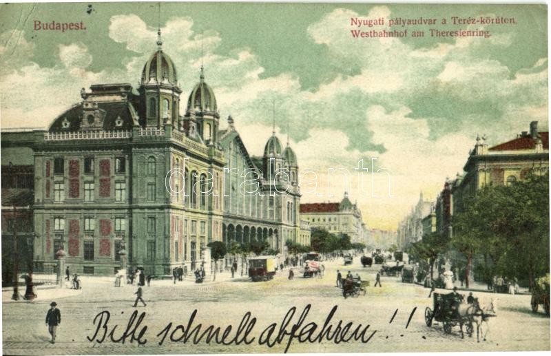 1910 Budapeset VI. Nyugati pályaudvar a Teréz körúton, vasútállomás, v... https://www.darabanth.com/hu/357-Gyorsarveres/357.0/Kepeslapok/Magyarorszag~2000005/1910-Budapeset-VI-Nyugati-palyaudvar-a-Terez-koruton-vasutallomas-villamos-Divald-Karoly~II2046529