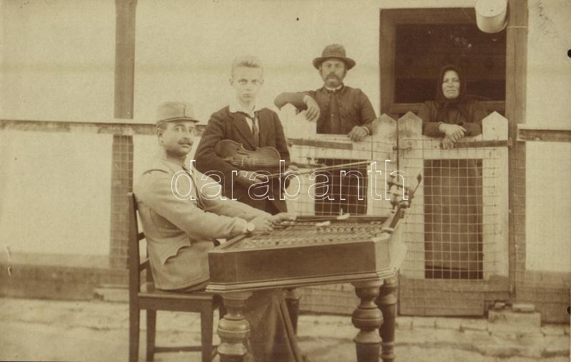 Leírás: 1918 Kunszentmiklós, katona cimbalommal, hegedűs fiú. Weisz Aranka photo