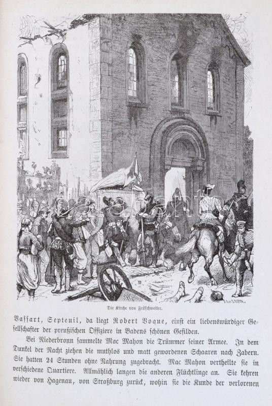 Georg Hiltl: Der Französische Krieg von 1870 und 1871. Woldemar Friedrich illusztrációival. Bielefeld-Leipzig, 1872, Velhagen&Klasing. Német nyelven. Szövegközti és egészoldalas fekete-fehér illusztrációkkal és kihajtható térképekkel illusztrált. Kopott félbőr-kötésben, névbélyegzővel.