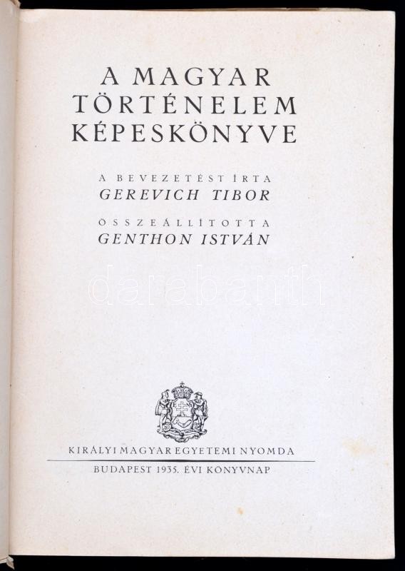 Leírás: Genthon István: A magyar történelem képeskönyve. Bp., 1935, Királyi Magyar Egyetemi Nyomda. Kiadói papírkötés, szakadt, egyébként jó állapotban.