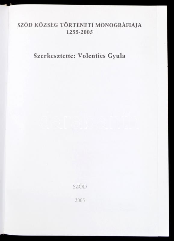 Volentics Gyula (szerk.): Sződ község történeti monográfiája. 1255-2005. Sződ, 2005, Sződ Község Polgármesteri Hivatala. Kiadói kartonált papírkötés. Megjelent 1000 példányban.