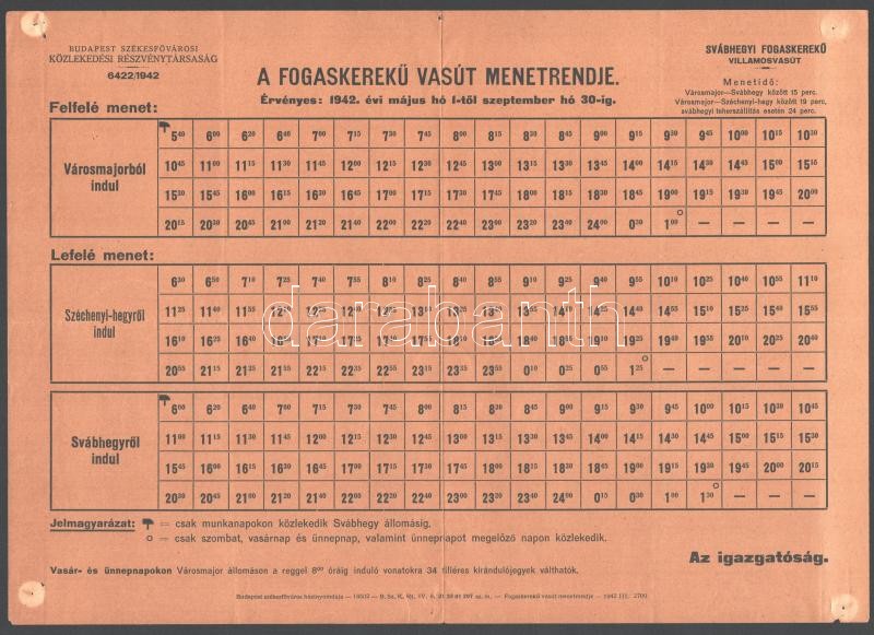 Leírás: 1942 2 db fogaskerekű menetrend 36x25 cm