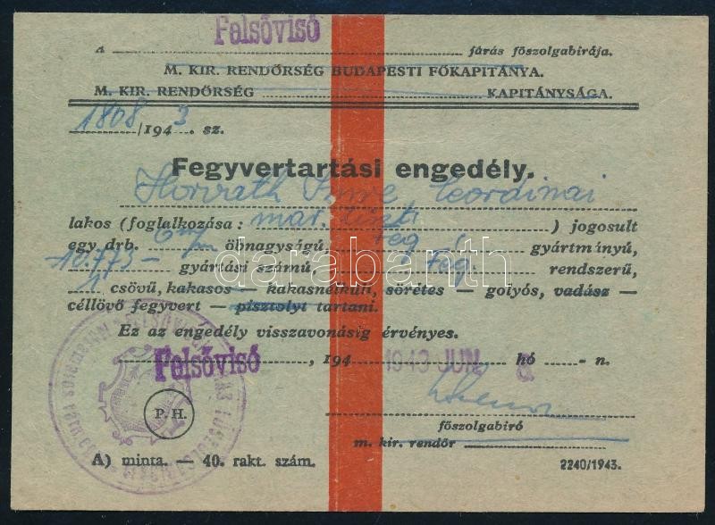 1943 Felsővisó, fegyvertartási engedély, 1 és 2 P okmánybélyegekkel, f... https://www.darabanth.com/hu/357-Gyorsarveres/357.0/Mutargy-papirregiseg-egyeb/Okmanyok~500017/1943-Felsoviso-fegyvertartasi-engedely-1-es-2-P-okmanybelyegekkel-felulbelyegzessel~II2051602