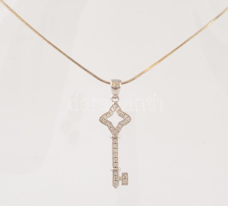 Leírás: Ezüst(Ag) szögletes kígyó nyaklánc, köves kulcs függővel, jelzett, h: 55 cm, 3,7×1 cm, bruttó: 6,3 g