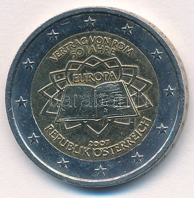 Austria 2007. 2 Euro Bi-Metallic "50th Anniversary - Treaty of Rome" C:AU small edge error