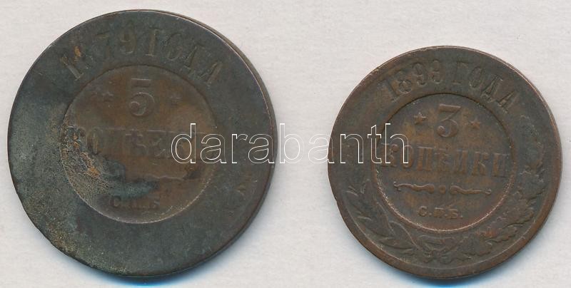 Orosz Birodalom 1879. 5k Cu "II. Miklós" + 1899. 3k Cu "II. Miklós" T:3