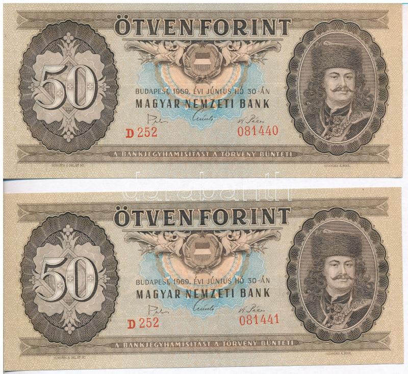1969. 50Ft (2x) sorszámkövetők, nyomdai papírránc T:I