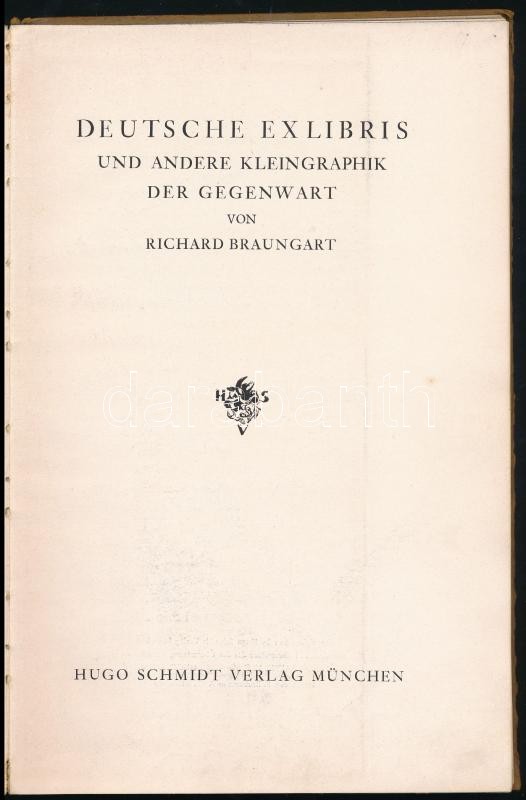 Braungart, Richard: Deutsche Exlibris und andere Kleingraphik der Gegenwart. München, 1922, Hugo Schmidt Verlag. Kiadói kartonált kötés, gerincnél hiányos, egyébként jó állapotban.