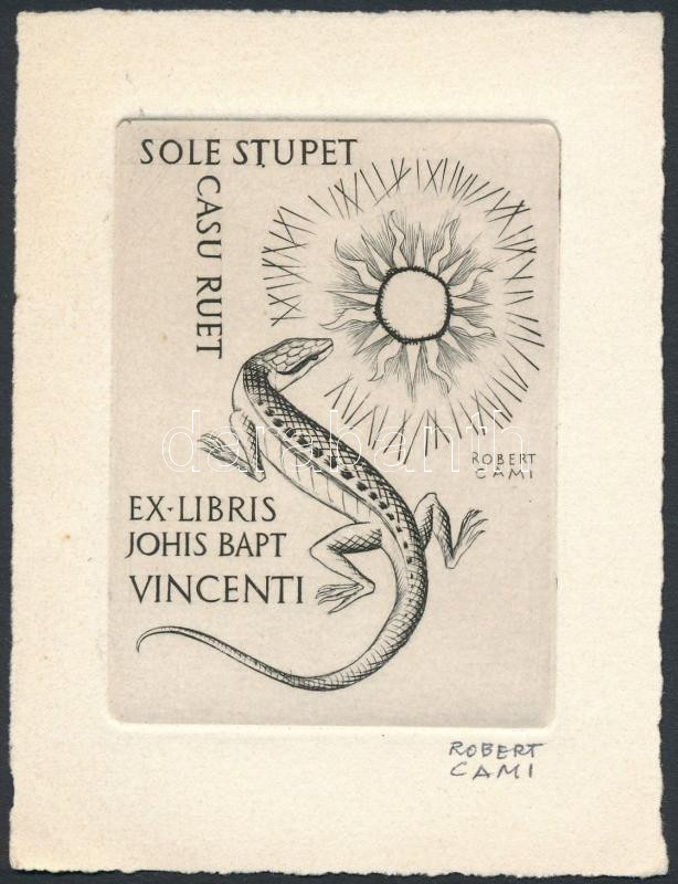 Leírás: Robert Cami (1900-1975) :Ex libris Johis Bapt. Rézkarc, papír, jelzett, 8×6 cm