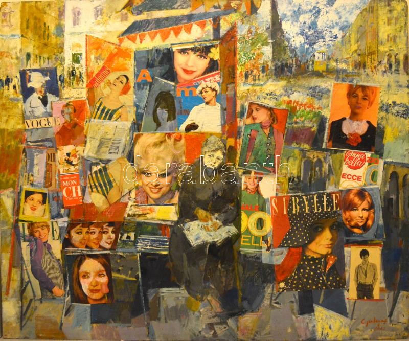 Gulyás Dénes (1927-2003): Azok a hatvanas évek.... Olaj- kollázs, faro... https://www.darabanth.com/hu/358-Gyorsarveres/358.0/Festmenyek-es-grafikak/Festmenyek-es-grafikak~500001/Gulyas-Denes-1927-2003-Azok-a-hatvanas-evek-Olaj-kollazs-farost-jelzett-125C397148-cm-~II1950660