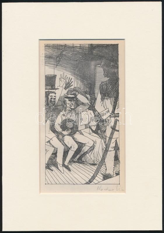 Leírás: Kondor Béla (1931-1972): Előadás. Rézkarc, papír, utólagos jelzéssel, paszpartuban, 15×8 cm