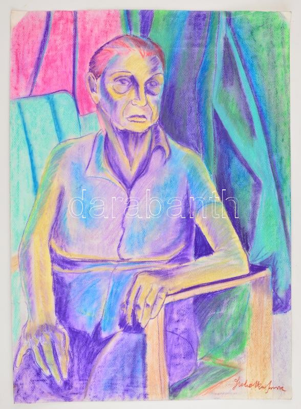 Leírás: Szobotka jelzéssel: Üllő férfi. Pasztell, papír, 70×49 cm