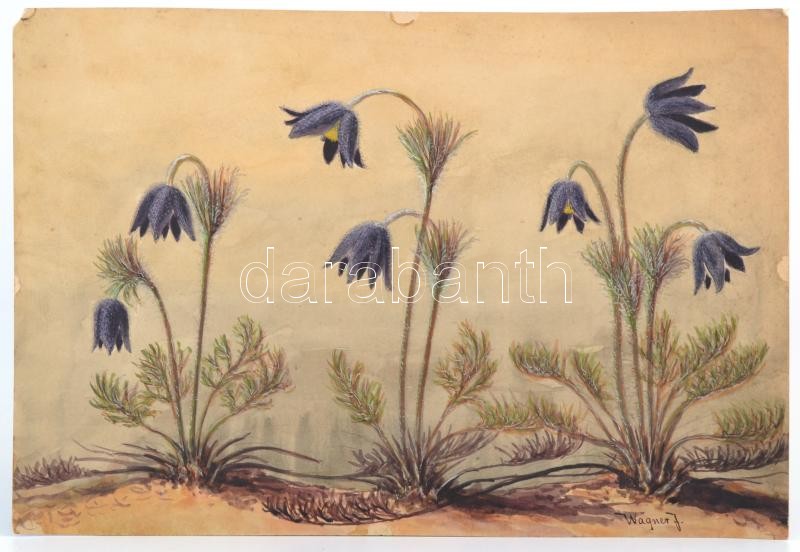 Wagner jelzéssel: Harangvirágok. Akvarell, papír, 25×36 cm https://www.darabanth.com/hu/358-Gyorsarveres/358.0/Festmenyek-es-grafikak/Festmenyek-es-grafikak~500001/Wagner-jelzessel-Harangviragok-Akvarell-papir-25C39736-cm~II2060863