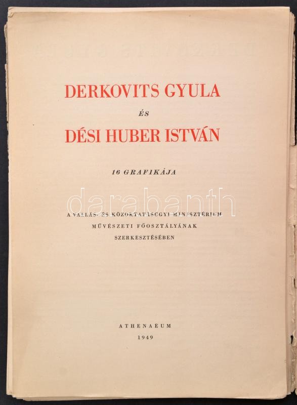 Derkovits Gyula és Dési Huber István 16 grafikája. A Vallás- és Közoktatásügyi Minisztérium Művészeti Főosztályának szerkesztésében. Bp., 1949, Athenaeum Szakadozott papírborítékban
