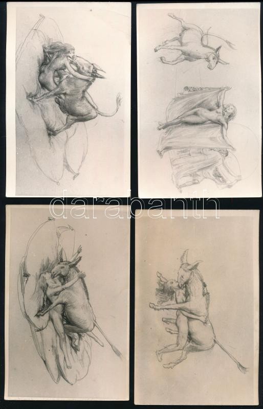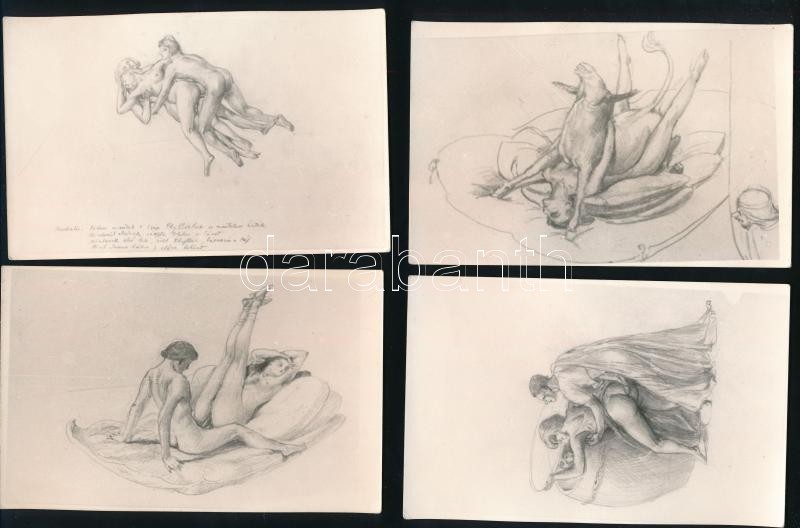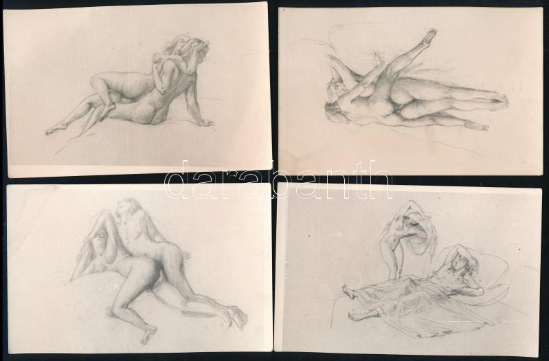 Leírás: 14 db erotikus rajz képeslap méretű fotómásolata, 9×14 cm