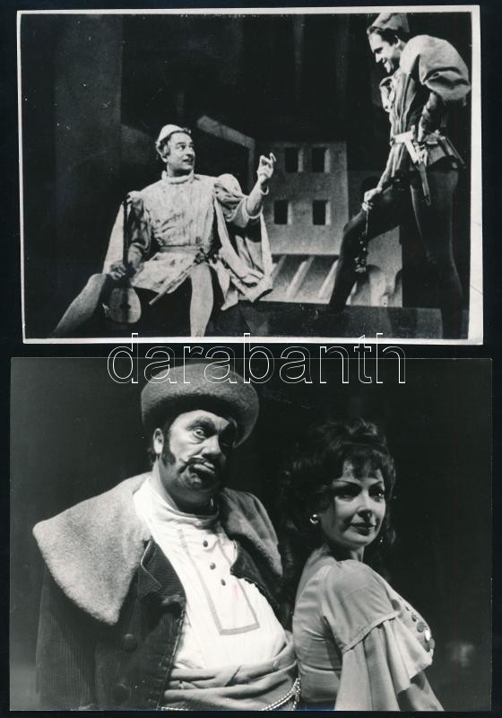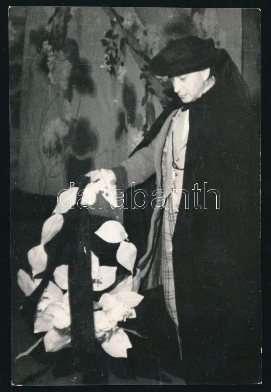 Leírás: Jelenetek a színpadról, Rátkai Márton, Házy Erzsébet, Palócz László, Jávor Pál, Szabó Sándor, 3 db hátoldalon feliratozott fotó, 18×13 cm