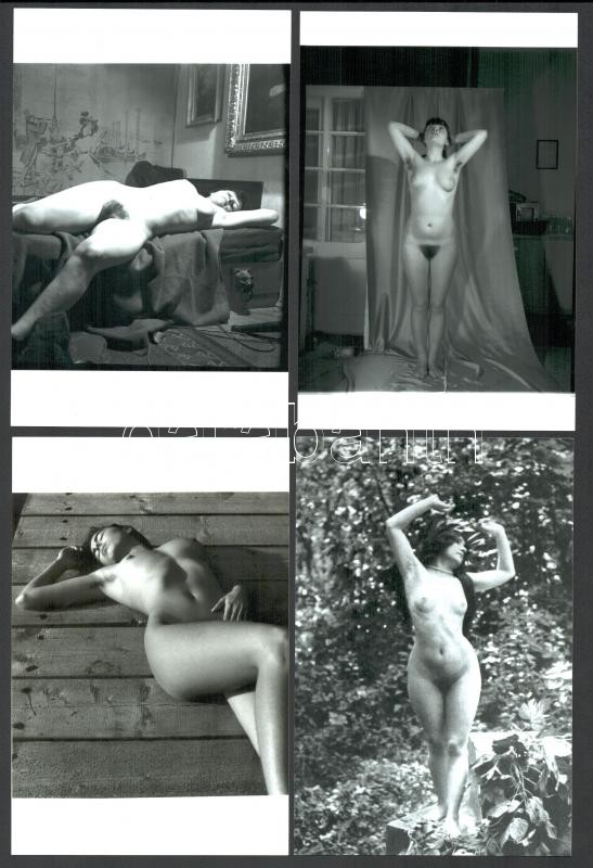 Leírás: Szolidan erotikus felvételek, amelyek eltérő időpontokban és változó helyszíneken készültek, 13 db mai nagyítás korabeli negatívokról, 15x10 cm