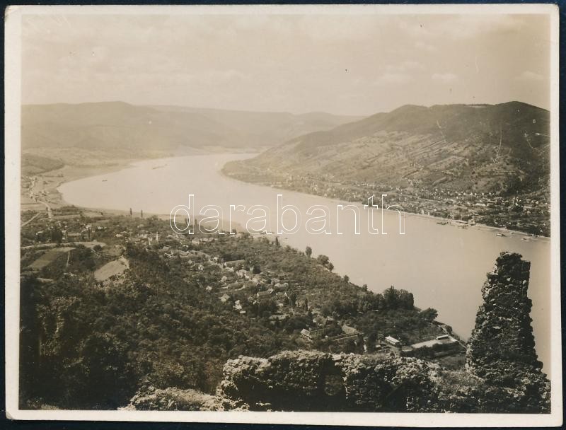 cca 1933 Kinszki Imre (1901-1945) budapesti fotóművész hagyatékából, a szerző által feliratozott - és aláírt - vintage fotó (Dunakanyar a Visegrádi várból fényképezve), 6,3x8,5 cm