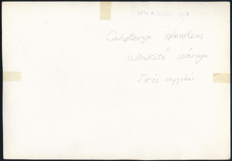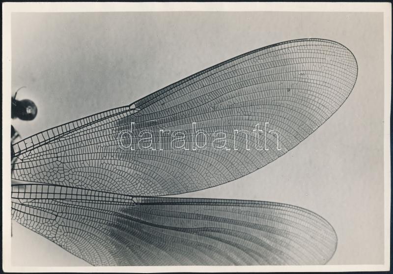 Leírás: cca 1935 Kinszki Imre (1901-1945) budapesti fotóművész aláírással jelzett vintage fotóművészeti alkotása (Szitakötő szárnya), 11,8x17.1 cm