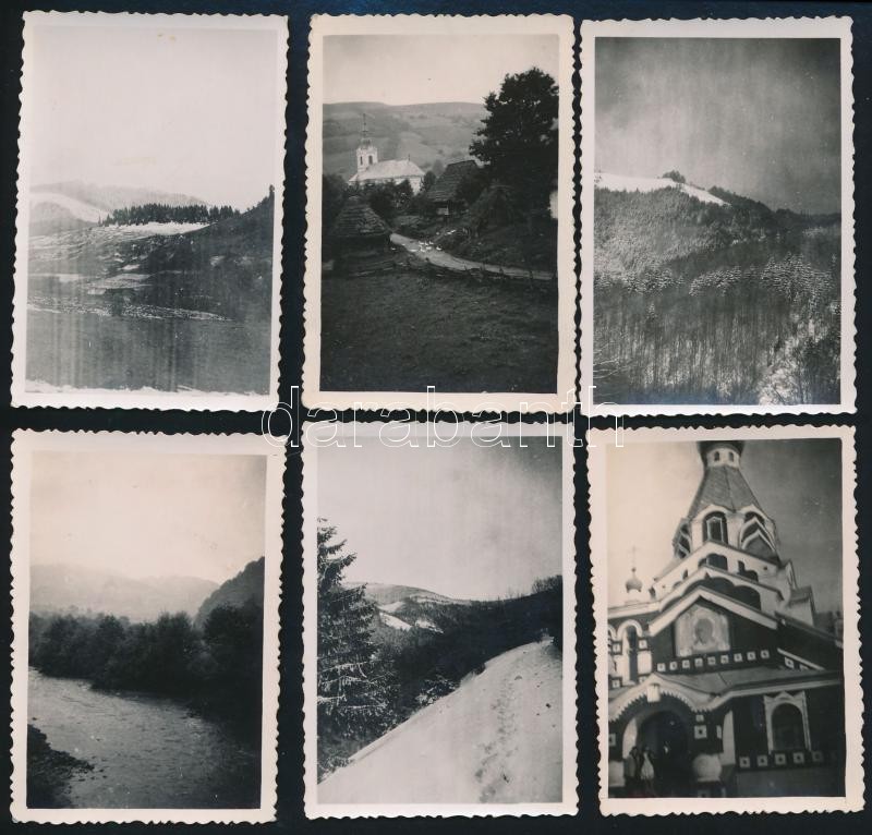 Leírás: cca 1939-1941 Kárpátaljai részletek, tájak (Ungvár, Volóc, beszkidi határvidék, stb.), 10 db fotó, hátoldalon feliratozva, 6×9 cm