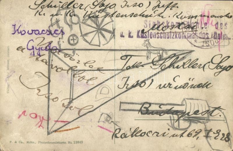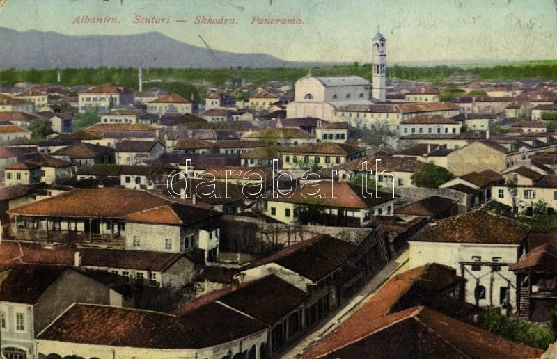 Leírás: Shkoder, Shkodra, Skutari; Panorama / general view + "Stabskommando des K.u.K. Küstenschutzkommandos Dalmatien" (worn corners)