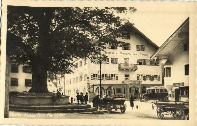 Leírás: Reutte, Ausserfern, Marktplatz, Gasthof & Brauerei zum "Hirsch" / market square, hotel and brewery, automobiles