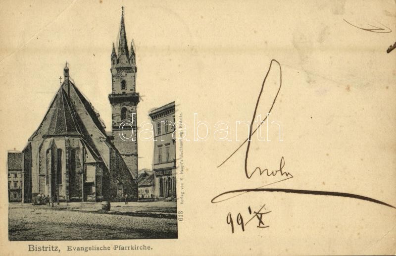 1899 Beszterce, Bistritz, Bistrita; Evangelische Pfarrkirche. Verlag v... https://www.darabanth.com/hu/358-Gyorsarveres/358.0/Kepeslapok/Erdely~1000005/1899-Beszterce-Bistritz-Bistrita-Evangelische-Pfarrkirche-Verlag-v-M-Haupts-Buchhandlung-Ev~II2055364
