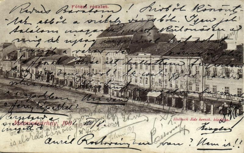 1901 Marosvásárhely, Targu Mures; Fő tér, Dudutz István és Ferenc, Widder Antal, Bogdánffy István üzlete. Holbach Ede kiadása / main square, shops (EK)