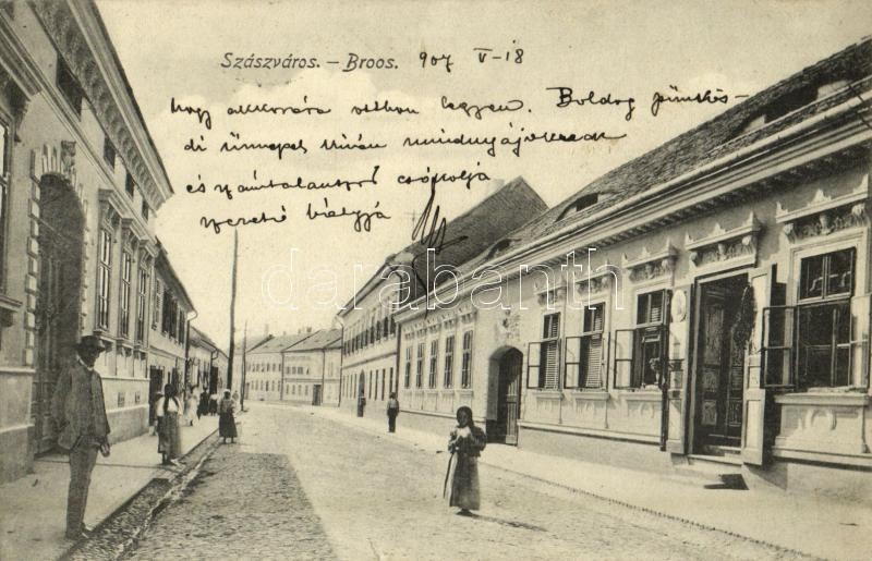 1907 Szászváros, Broos, Orastie; utca / street https://www.darabanth.com/hu/358-Gyorsarveres/358.0/Kepeslapok/Erdely~1000005/1907-Szaszvaros-Broos-Orastie-utca-street~II2058312