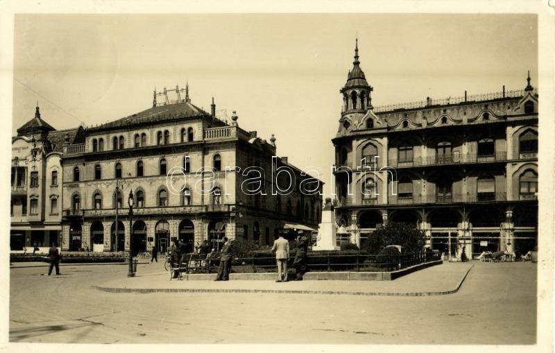 Leírás: 1942 Nagyvárad, Oradea; Horthy Miklós tér, Egyesült Bank, Pannonia szálloda, kávéház és étterem / square, bank, hotel, café and restaurant