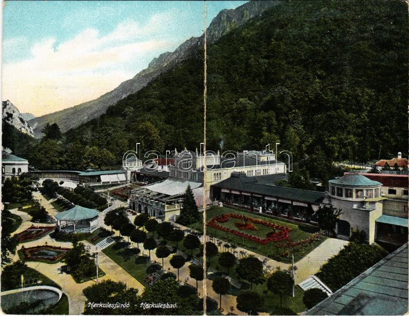 Herkulesfürdő, Baile Herculane; kinyitható panorámalap / folding panor... https://www.darabanth.com/hu/358-Gyorsarveres/358.0/Kepeslapok/Erdely~1000005/Herkulesfurdo-Baile-Herculane-kinyithato-panoramalap-folding-panoramacard-hajtasnal-szaka~II1981228
