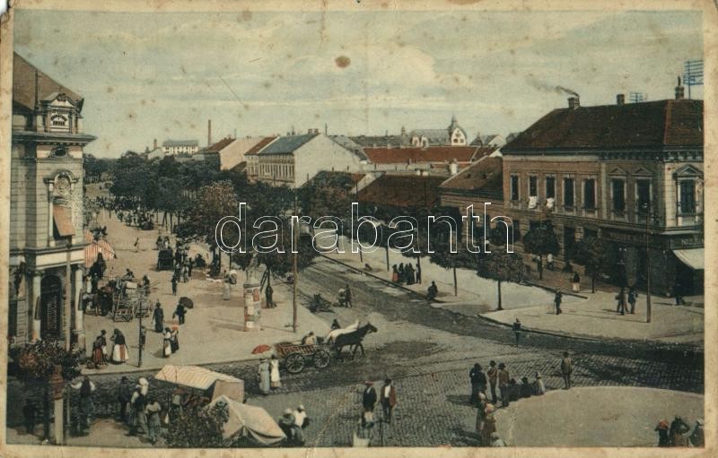 Temesvár, Timisoara; Józsefváros, Bem utca részlet a vasút felé, piac, Nissin testvérek üzlete / Josefstadt / Iosefin, street view towards the railway station, market, shops (EM)