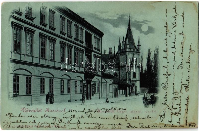 1901 Kassa, Kosice; Kossuth Lajos utca, Jakab palota (Jakab Árpád építész villája), üzlet. Kiadja Szent-Istványi Júlia / street view, palace, architect's villa, shop (Rb)