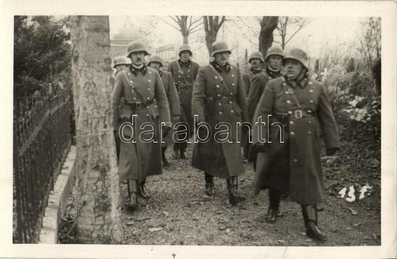 Leírás: 1938 Léva, Levice; bevonulás, katonák a temetőben / entry of the Hungarian troops, soldiers in the cemetery. Foto Rusznák, photo
